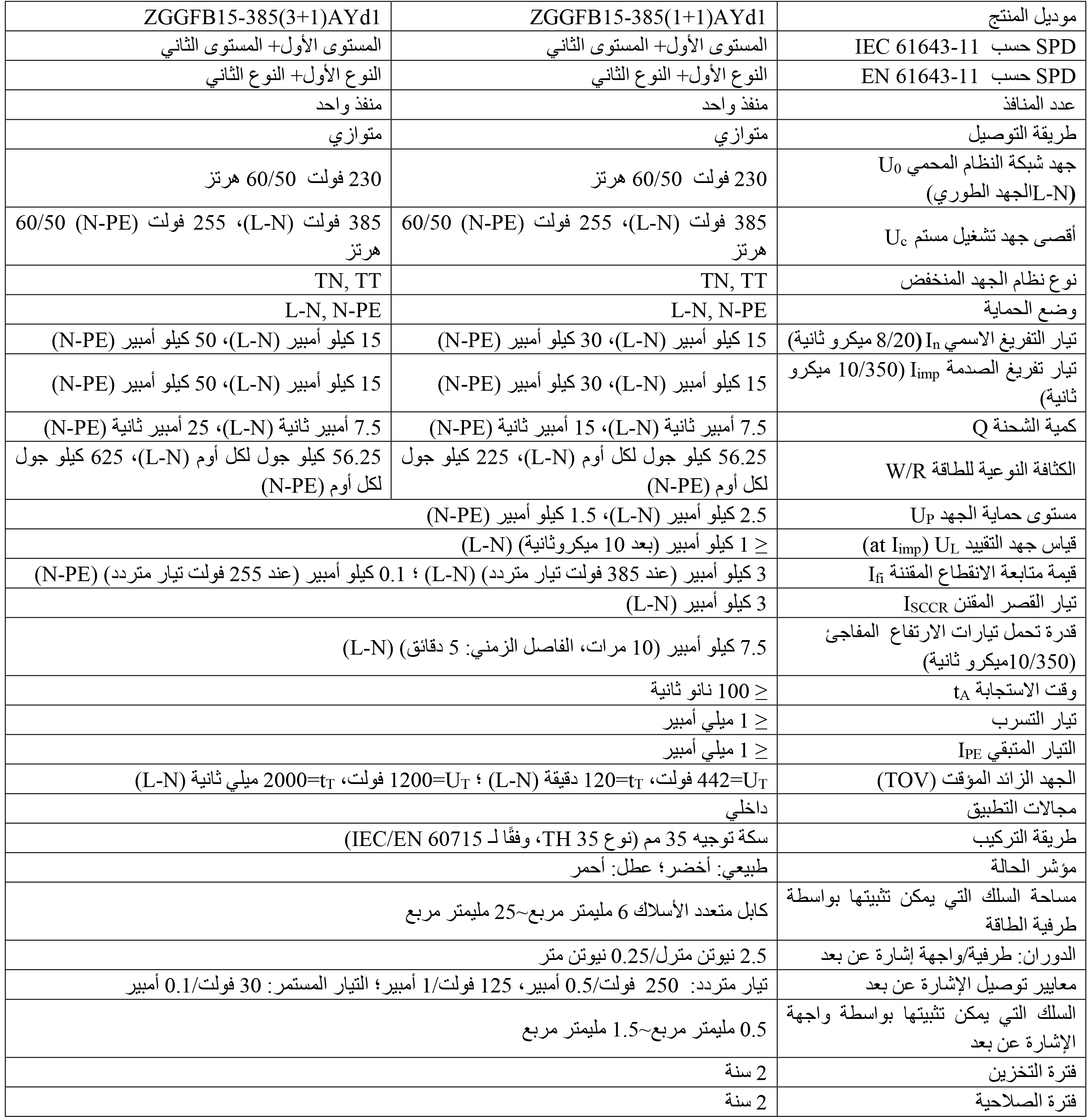 معايير التنفيذ IEC 61643-11:2011 ; EN 61643-11:2012
