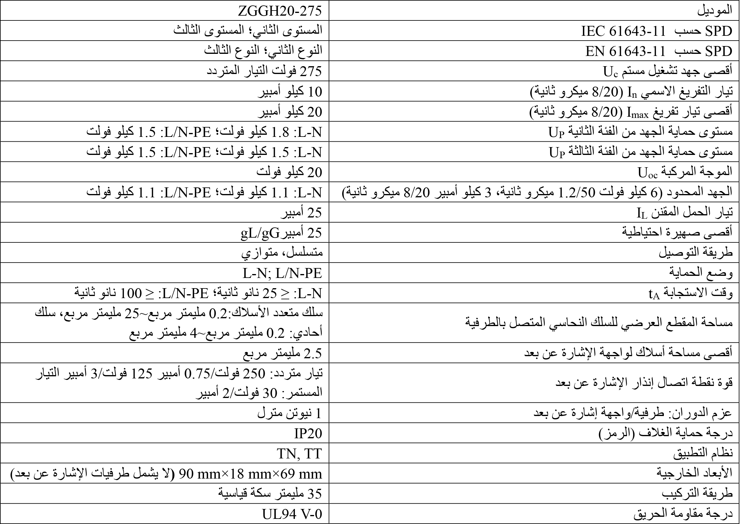 5. درجة حماية الغلاف IP 20، ودرجة مقاومة الحريق UL 94 V-0.