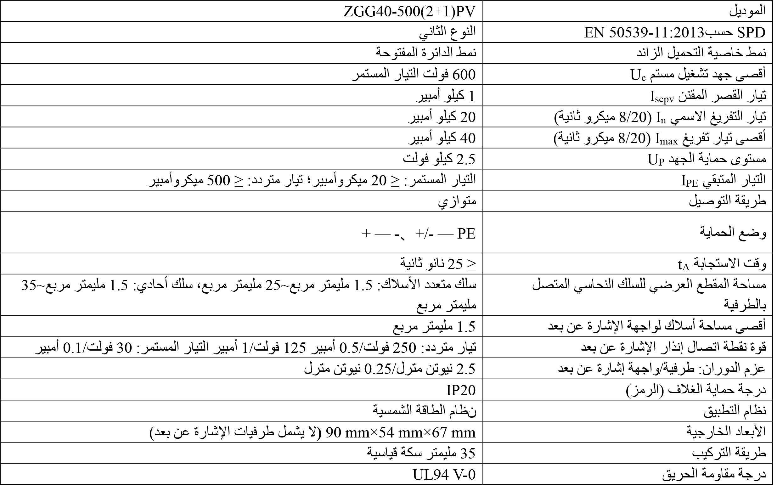 5. درجة حماية الغلاف IP 20، ودرجة مقاومة الحريق UL 94 V-0.