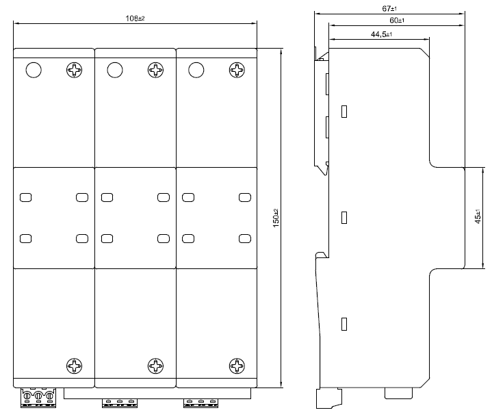 150 mm×108 mm×67 mm (Ohne Fernmeldeterminals) |