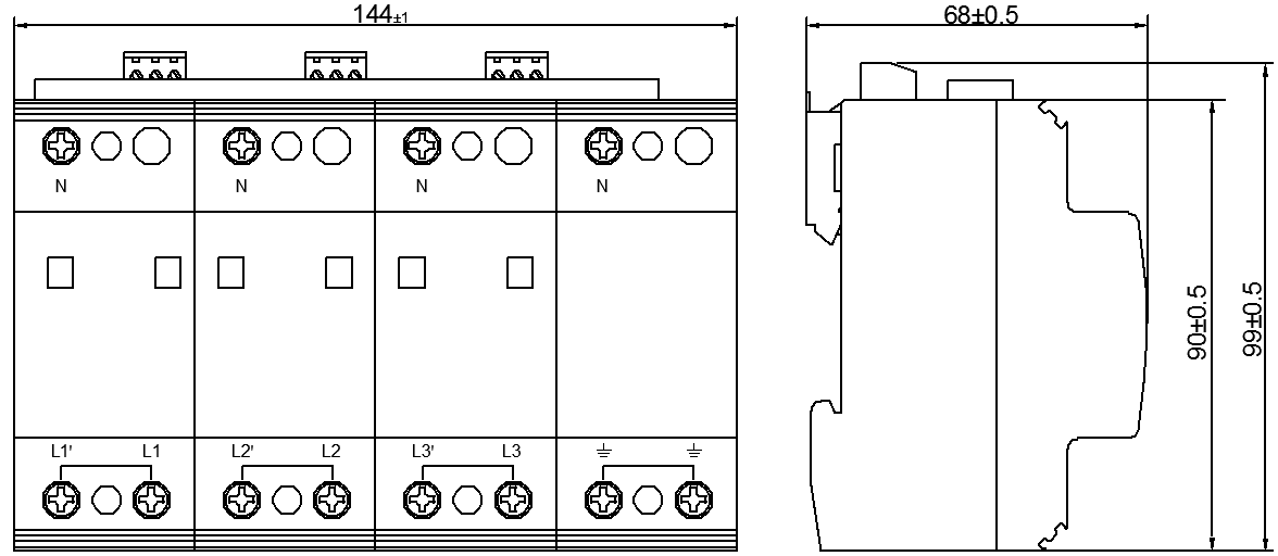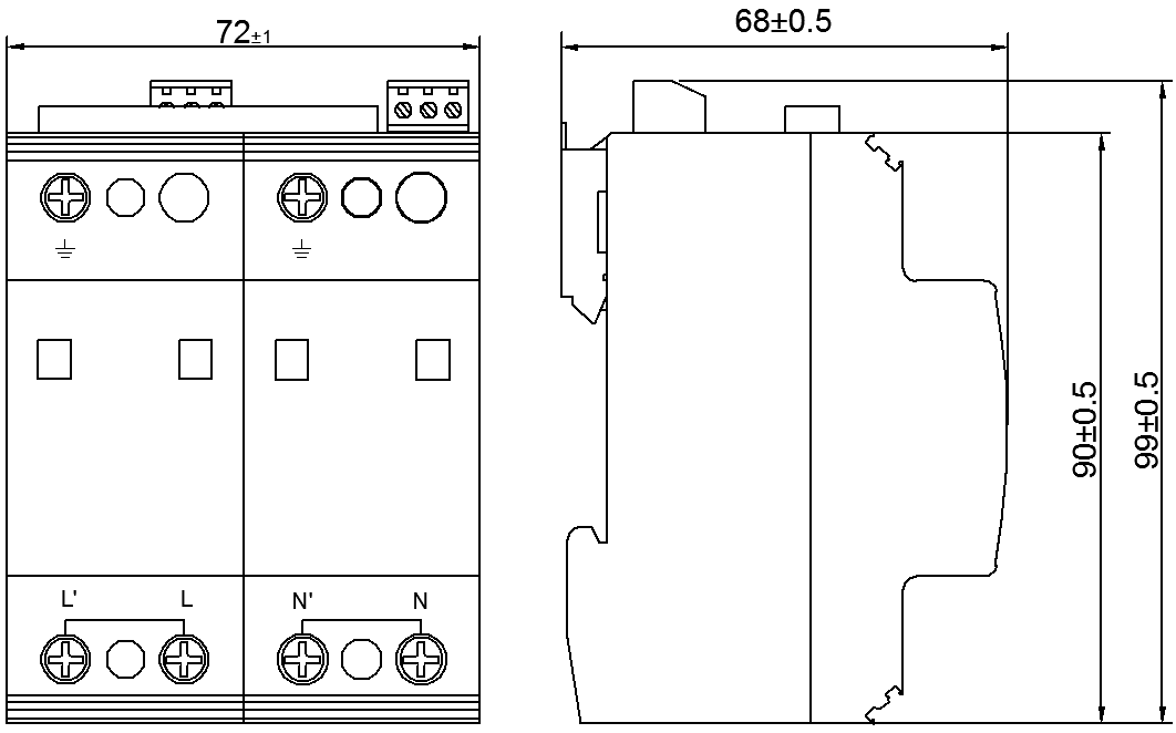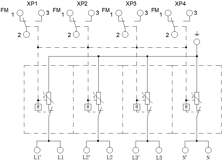 This series is used for primary and secondary surge protection. The 3+1 and 1+1 configurations are composed of MOV and GDT power module for L-N, N-PE protection respectively. The 4+0 and 2+0 configurations are composed of MOV power module for L-PE, N-PE protection. It is applied in low voltage AC power distribution system, and connected between the AC power supply and the equipment in parallel. It can prevent the equipment from the impulse surge and the transient overvoltage caused by the outside environment (such as lightning, EMI, etc.) or by the system (such as switching effects of the system, startup or shutoff of the inductance and capacitance load, etc.).