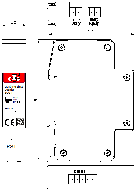 When the equipment detects a lightning strike, the dry contact signal changes from normally open to normally closed