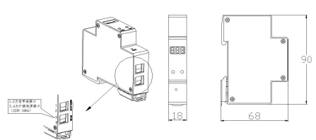 Install the body on a standard 35mm rail, pass the ground wire through the inductor, fix it, and connect the inductor to the counter body.