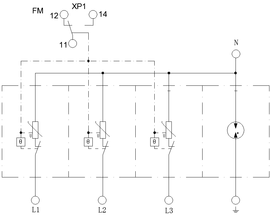ZGG40-1000(3+1) Formado mediante una barra colectora que une el protector contra sobretensiones modular tipo varistor y el protector contra sobretensiones modular tipo de tubo de descarga de gas, provisto del modo de protección L-PE, este protector contra sobretensiones modular de potencia se aplica en sistemas de distribución de CA de baja tensión. conectado en paralelo entre la fuente de alimentación de CA y el equipo del sistema, y dedicado a proteger contra daños causados por impulsos de sobretensión y sobretensiones transitorias originadas por factores externos (rayos, interferencias de radiación electromagnética, etc.) o internos del sistema (efectos de conmutación del sistema, arranque y parada de cargas inductivas y capacitivas, etc.).