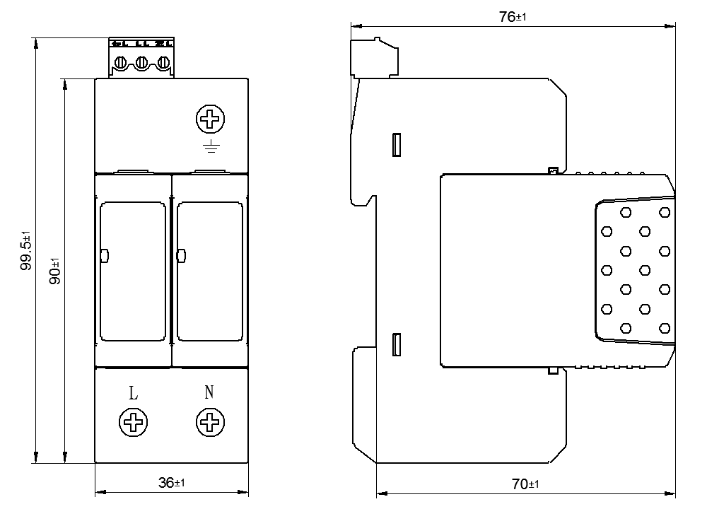 90 mm×36 mm×76 mm (Sauf la borne de télésignalisation)