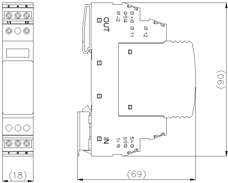 90 mm×18 mm×69 mm (Sauf la borne de télésignalisation)