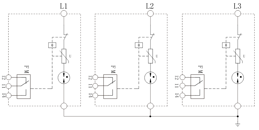 電源モジュールサージ防護デバイス「ZGGH12.5-760T」の3セットで構成され、低電圧交流配電システムに適用され、交流電源と機器の間に並列接続されます。外部(落雷、電磁波障害など)またはシステム内部(システムのインプット・アウトプット効果、誘導性負荷と容量性負荷の起動、停止など)のサージインパルスと機器への瞬時過電圧による影響を効果的に防ぎます。