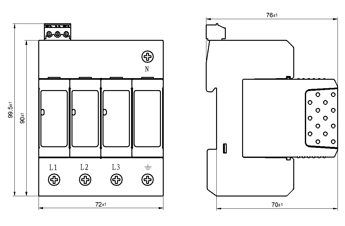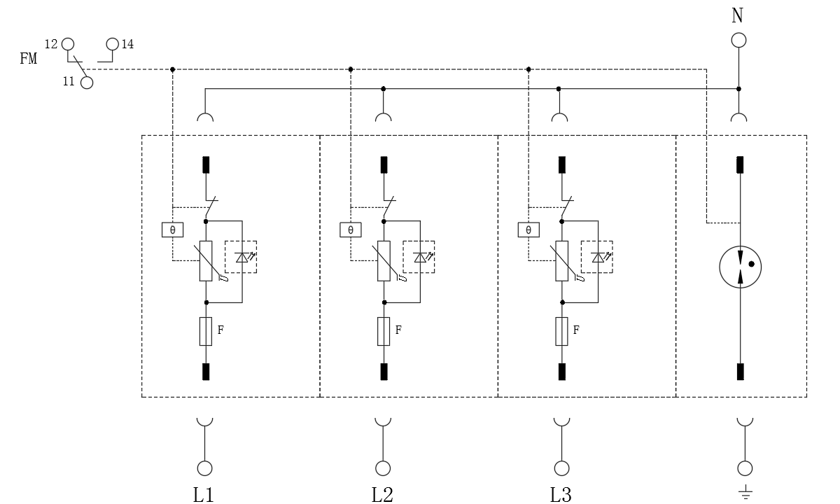 ZGGB40-385(3+1) 금속산화물바리스터(MOV)형 전원 모듈, 가스 방전관형 전원 모듈 및 베이스로 구성되며, 각각 L-N, N-PE 간의 Class 2 보호에 사용됩니다. 본 전원 모듈 서지보호장치는 내장형 퓨즈를 탑재하고 있어 별도의 외부 백업 퓨즈 없이 설치 가능하며, 공간을 절약할 수 있습니다.